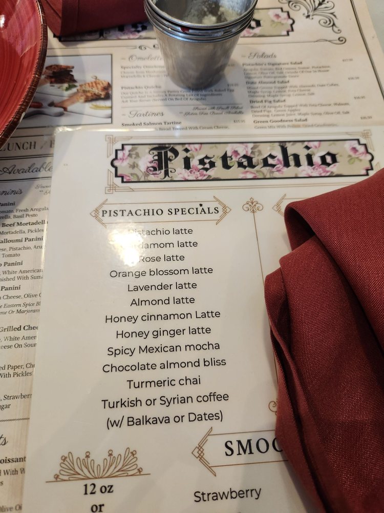 Pistachio Cafe is a cozy breakfast and brunch spot in New Haven, offering a variety of options for every palate. From their signature Pistachio Classic Omelette to the unique Pistachio Tahini Tartine, each dish is crafted with care and creativity. The cafe also boasts a selection of waffles, parfaits, and pastries, including the Double Chocolate Belgian Waffles and the Almond Raisin Waffles. Customers rave about the in-house pistachio coffee and the inviting ambiance filled with beautiful art decor. While some reviewers mention minor drawbacks like dry pastries, the overall impression is overwhelmingly positive, with guests praising the friendly service and charming atmosphere. Whether you're looking for a relaxing coffee break or a tasty meal, Pistachio Cafe is definitely worth a visit.